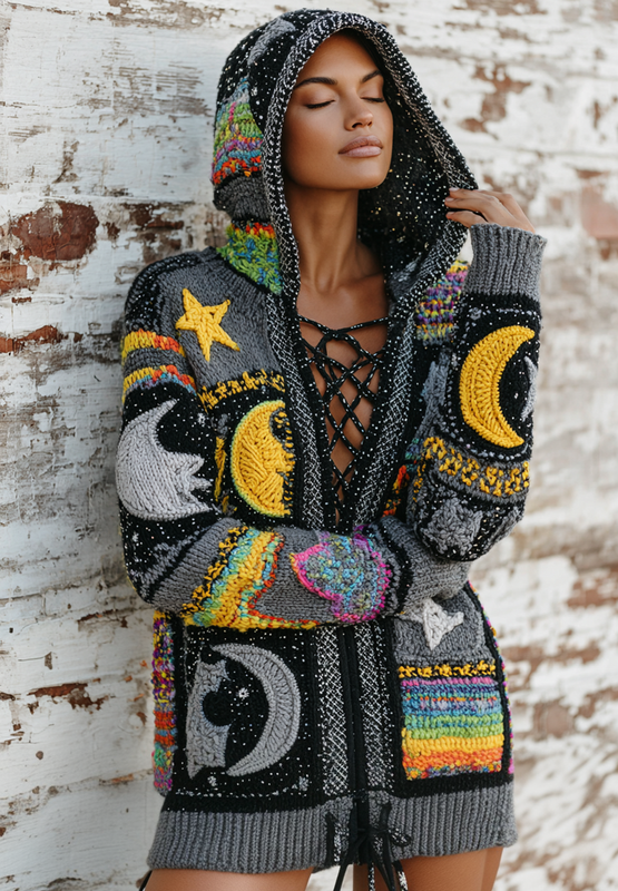 Autumn and winter long-sleeved patchwork knitted hooded contrasting color sweatshirt 1aea