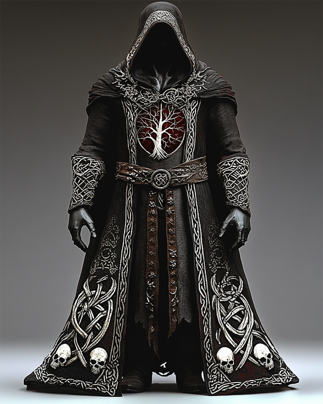 Men's autumn and winter skull and tree of life embroidered robe-style hooded coat 9ccb