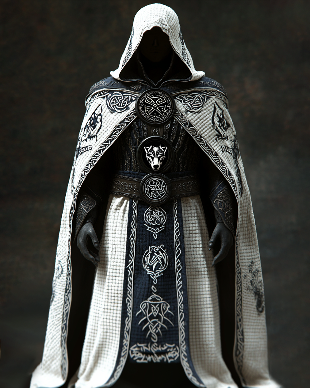 Men's autumn and winter fashion design Viking wolf Celtic pattern embroidery contrast color stitching hooded cloak 5037