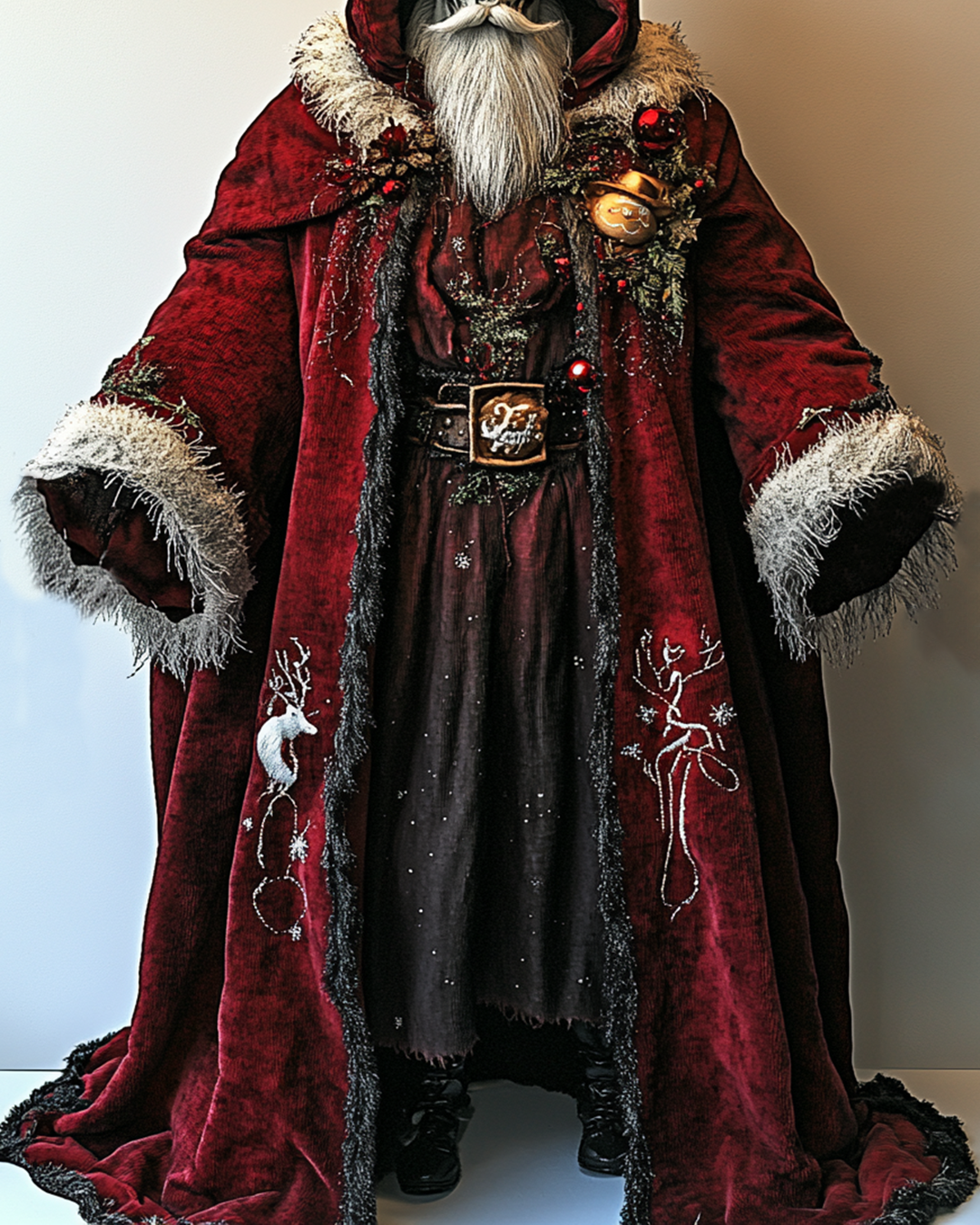 Men's Christmas Themed Contrast-Color Embroidered Velvet Santa Hooded Cape 8077