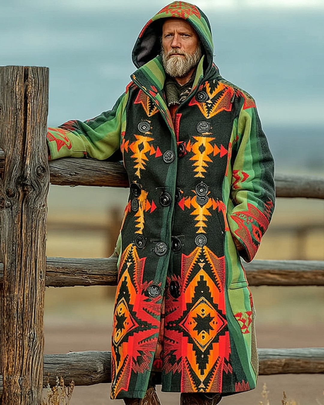 Men's ethnic Aztec print embroidered flannel hooded coat 5c1c