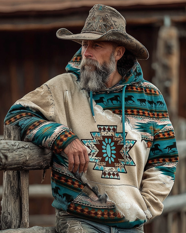 Men's Western Aztec Style Hoodie Sweatshirt 65a0