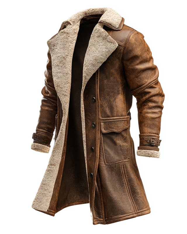 Men's Vintage Suede Patchwork Wool Velvet Multi-Pocket Lapel Outdoor Coat f5yi
