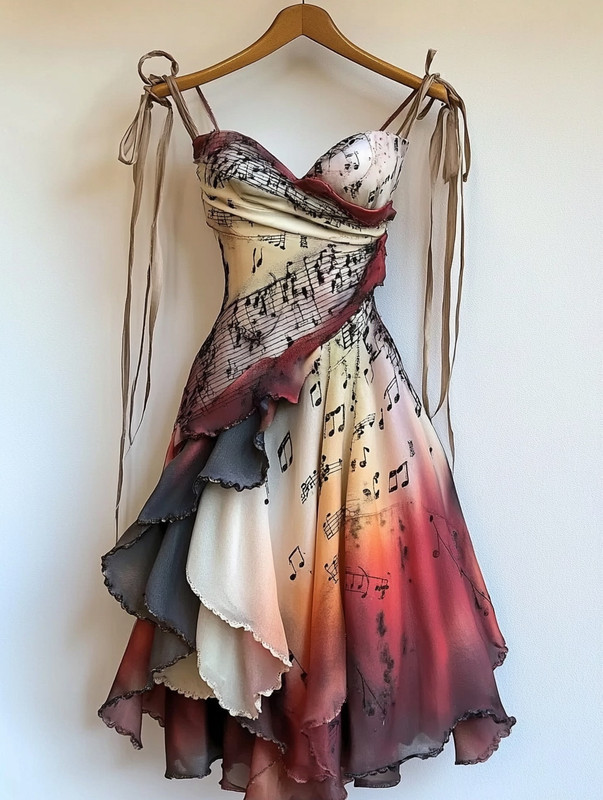 Retro Elegant Music Theme Irregular Stitching Dress 8aed
