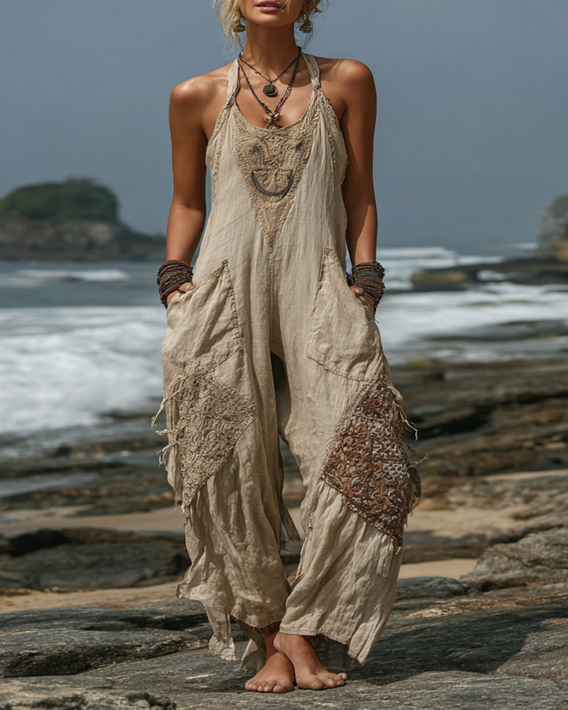 Summer Holiday Lace Hand Irregular Halter Overalls cd98